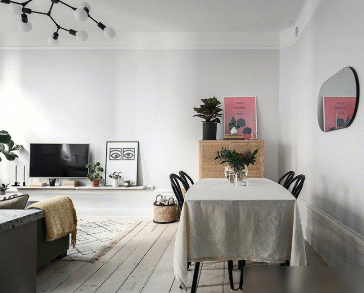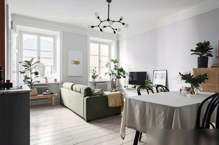 你看他们的客厅,墨绿色沙发配着绿植,小茶几上摆着茶具,午后太阳晒进来,两个人窝在沙发上看剧——这种“不刻意的精致”,比那种摆着大电视、空落落的客厅舒服多了吧?餐厅的木质桌椅,铺着家常桌布,旁边的竹藤橱柜虽然“旧旧的”,但能装下米、面、干货,比那种一碰就碎的网红餐边柜耐用一百倍——老人要的从来不是“好看”,是“能用一辈子”啊!